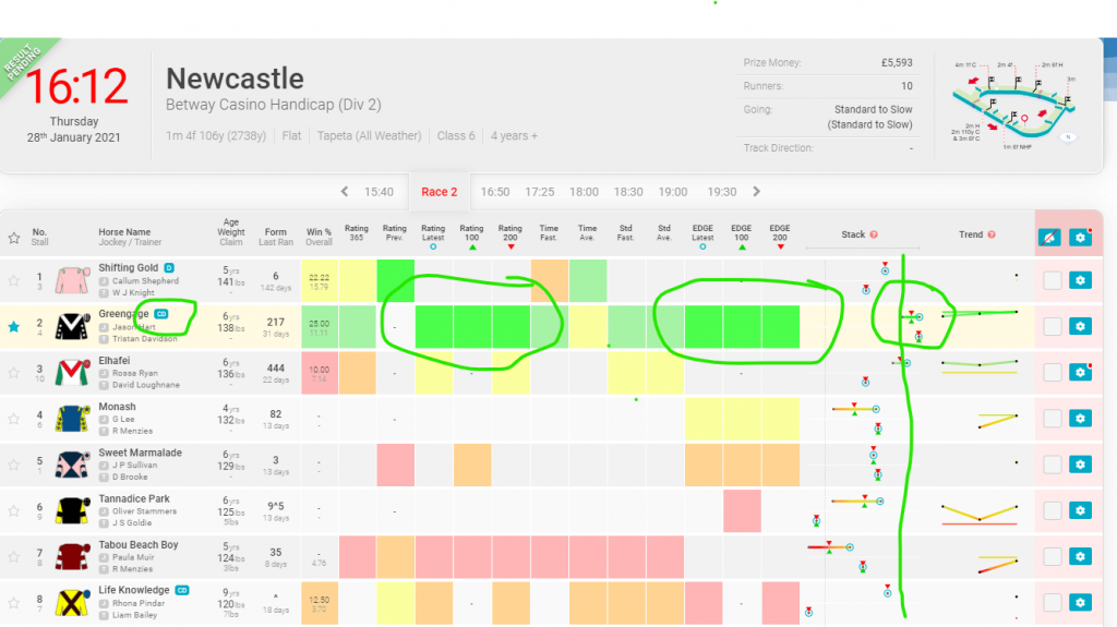 In the above race, the 16.12 at Newcastle Greengage is clearly the one to be interested in.